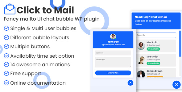 Click to mail – Fancy Mailto UI chat bubbles WordPress plugin